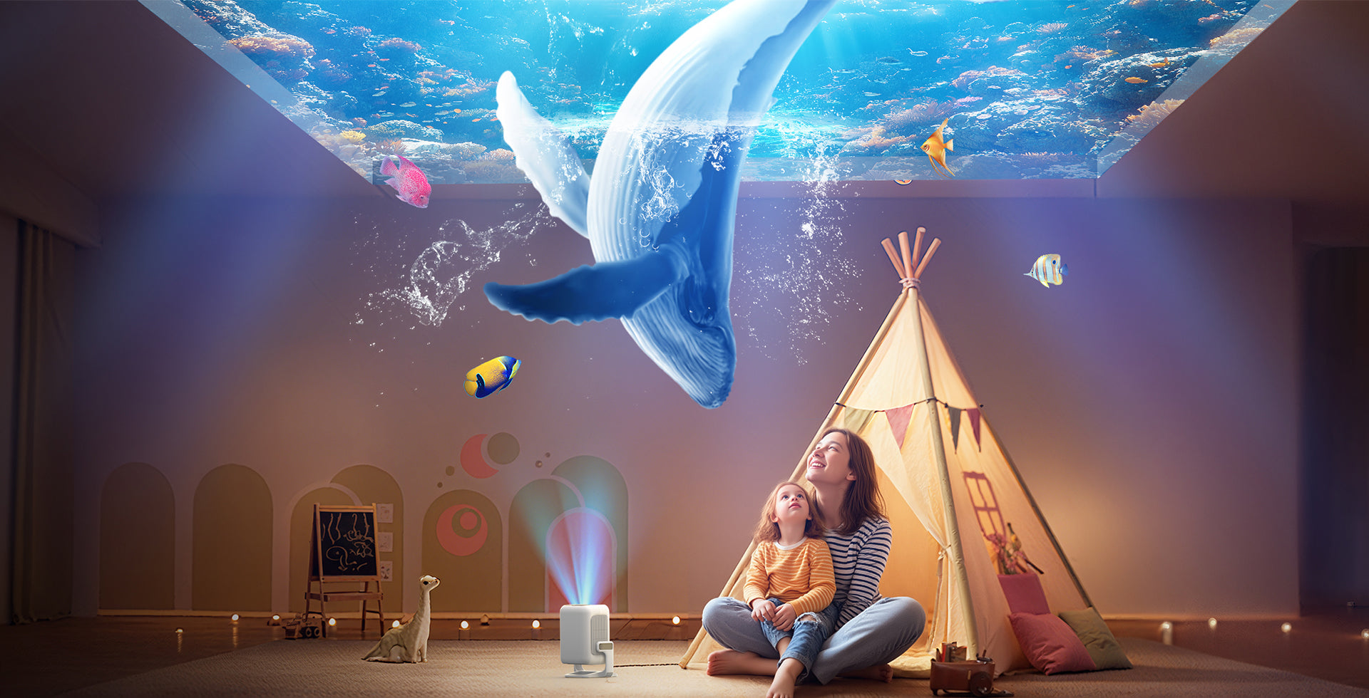 Harnessing the Power of Light to Create a 40-300'' Visual Feast at a short projection distance.